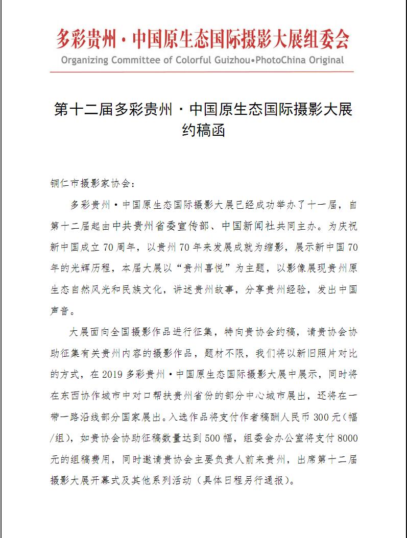 第十二届多彩贵州国际摄影大赛约稿函
