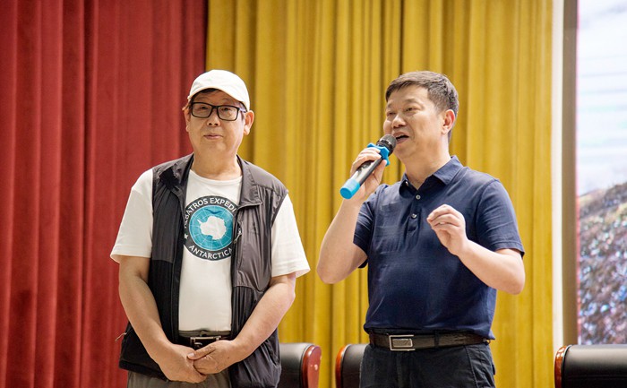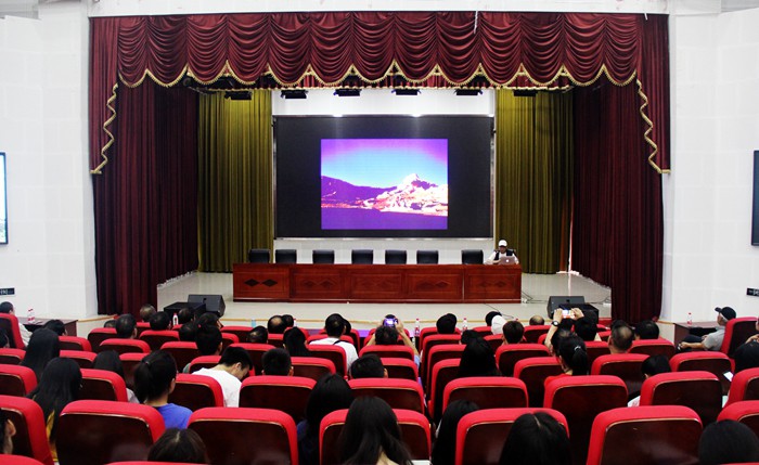 6月15日下午,由中共铜仁市委宣传部、中国摄影报、市文联、市摄影家协会与铜仁学院联合主办的中国梵净山“金像摄影大讲堂”第九讲在铜仁学院梵净人文生态馆开讲。本次讲座邀请了著名摄影家于云天担任主讲,讲座主题为《于云天的洪荒世界》,来自市文联、市摄协、各区县摄影爱好者以及部分铜仁学院师生近300人到场聆听讲座。