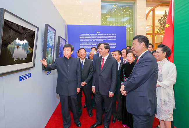 摄影家梅生陪同习近平主席和陈大光主席参观摄影展览