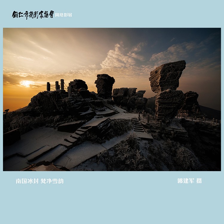 梵净山美,梵净山的雪景更美,她又仿佛是一位穿着洁白的衣裙的仙女,她的裙袂所到之处,雪原静若处子,雪峰冷峻而挺拔,玉树琼花怒放,而空气却显得特别的温柔。在她温柔的抚慰下,所有的躁动都开始安静下来了,大地静谧而安祥,就像一个在母亲怀里睡熟的婴儿。在这个银妆素裹的世界里,这片耀眼的洁白使天空也黯然失色。在这片宁静的洁白里,我仿佛走进了一个美丽而梦幻的童画世界……