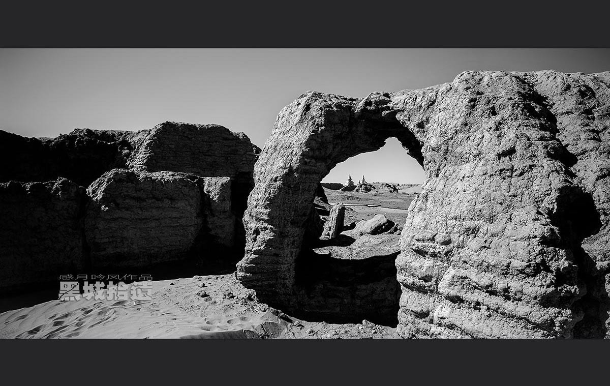 黑城位于内蒙古额济纳旗达来呼布镇东南25公里处,系西夏政权军区所在地,距今已有近1500年历史。在漫长的岁月中,黑城经历了无数战火和多个朝代的更迭,如今大部分城廓已被流沙淹没。行走在黑城的断壁残垣之间,我情不自禁哼唱起一首熟悉的老歌:“黯淡了刀光剑影,远去了鼓角铮鸣,眼前飞扬着一个个鲜活的面容。湮没了黄尘古道,荒芜了烽火边城,岁月啊你带不走那一串串熟悉的姓名……”那一刻,我仿佛进入了时光隧道——置身黑城的我,头顶着的分明就是西夏的天空!